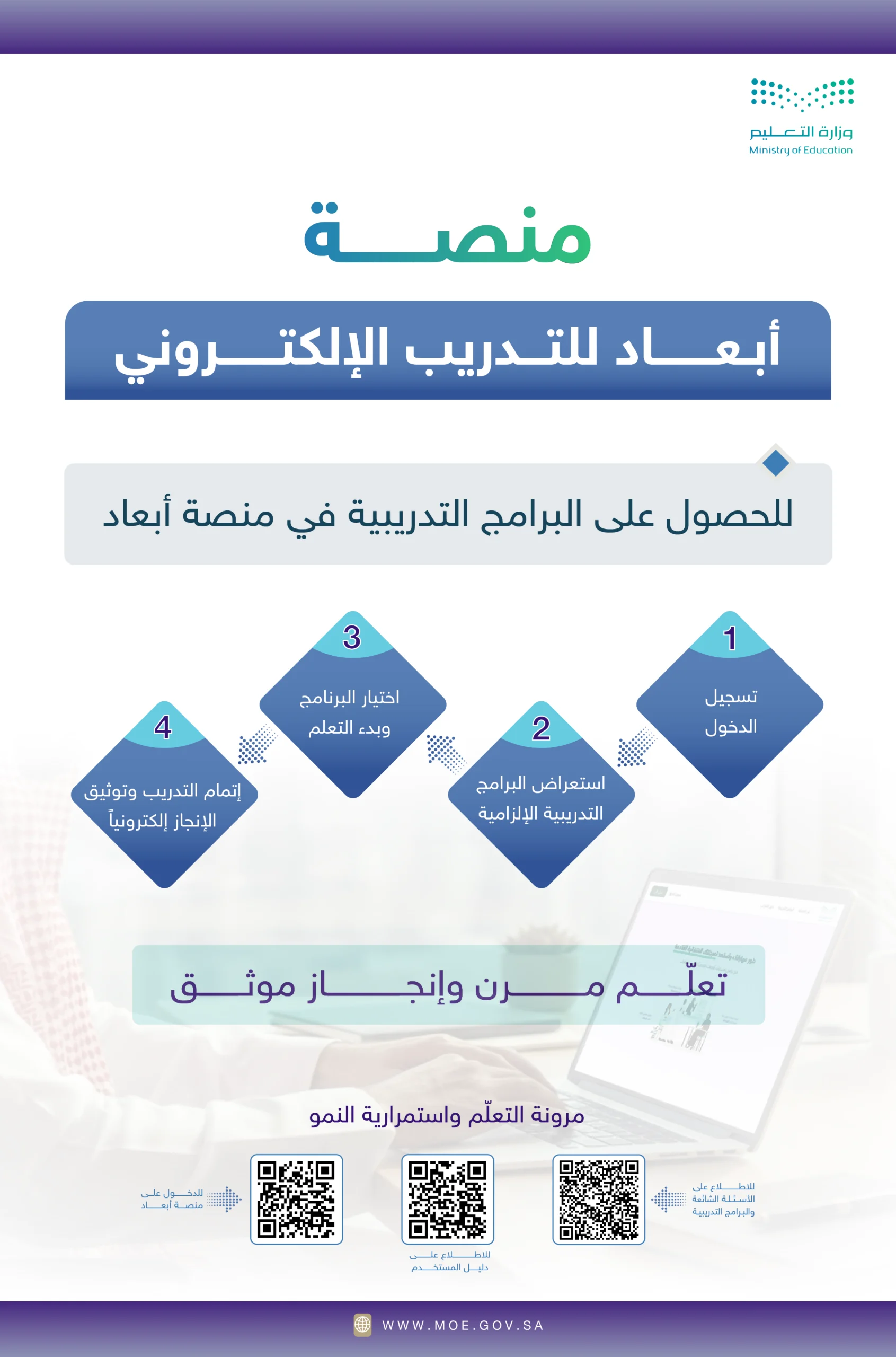 خطوات الدخول إلى منصة أبعاد الدورات الإلزامية 2026 ورابط التسجيل الرسمي عبر moe.futurex.sa بسهولة وأمان